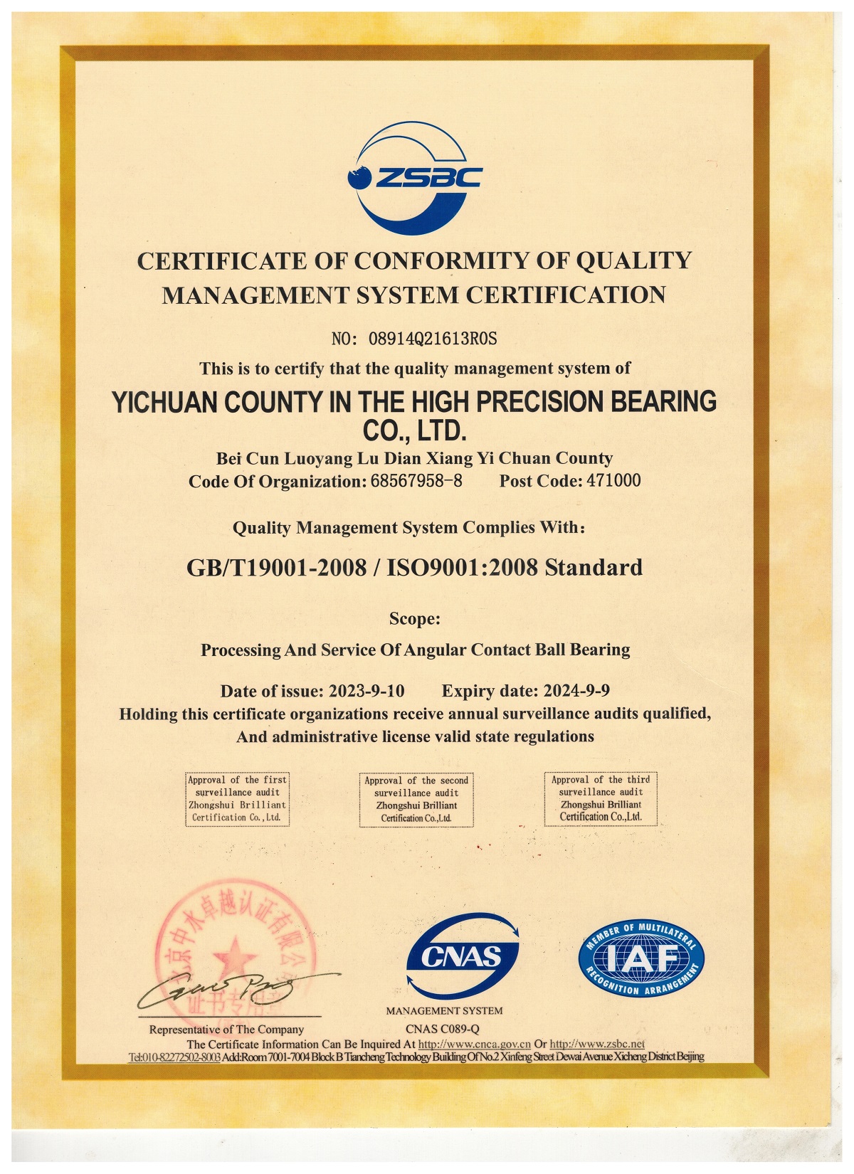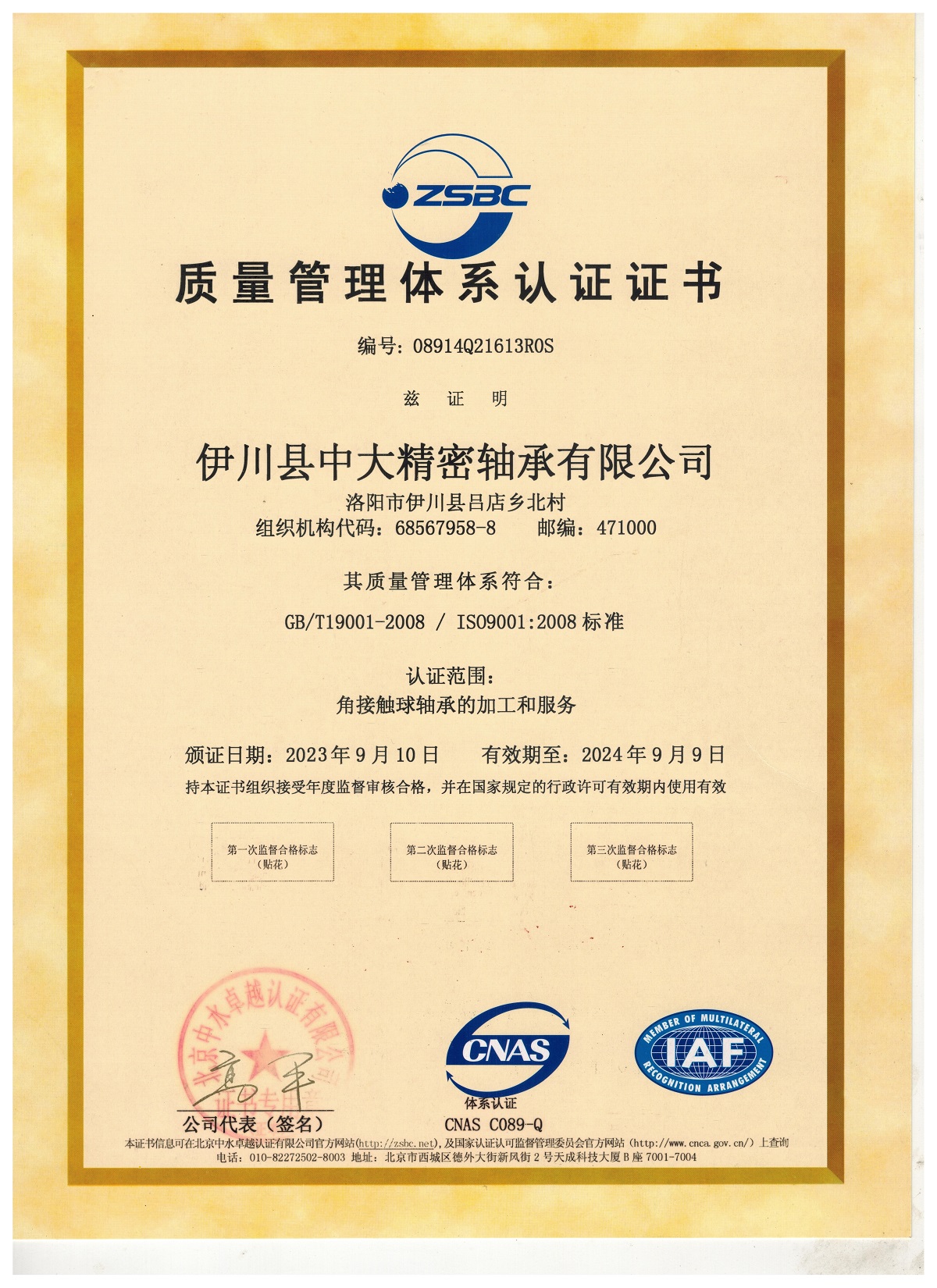 質(zhì)量管理體系認(rèn)證證書(shū)中文
